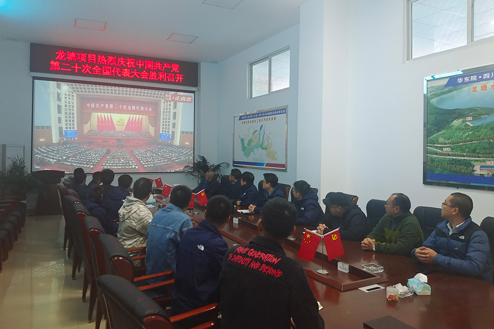 設計公司參與總承包管理的龍塘水庫及灌區總承包部集中收看二十大