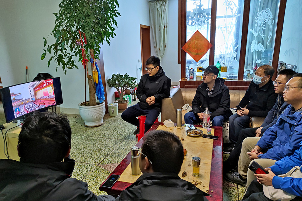 設計公司一行七人武引一期續建工程現場踏勘時在武引中心渠首管理處集中觀看二十大
