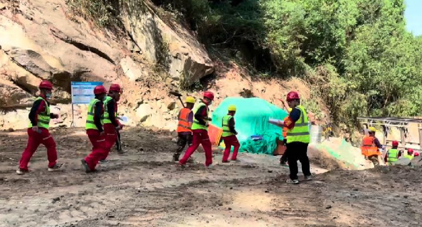 演練背景預設為二郎山2#施工支洞施工區域遭受連續強降雨,暴雨導致2#支洞洞口作業面山洪暴發,隧洞面臨洪水倒灌風險,同時可能引發泥石流、滑坡等地質災害,需立即啟動應急響應。