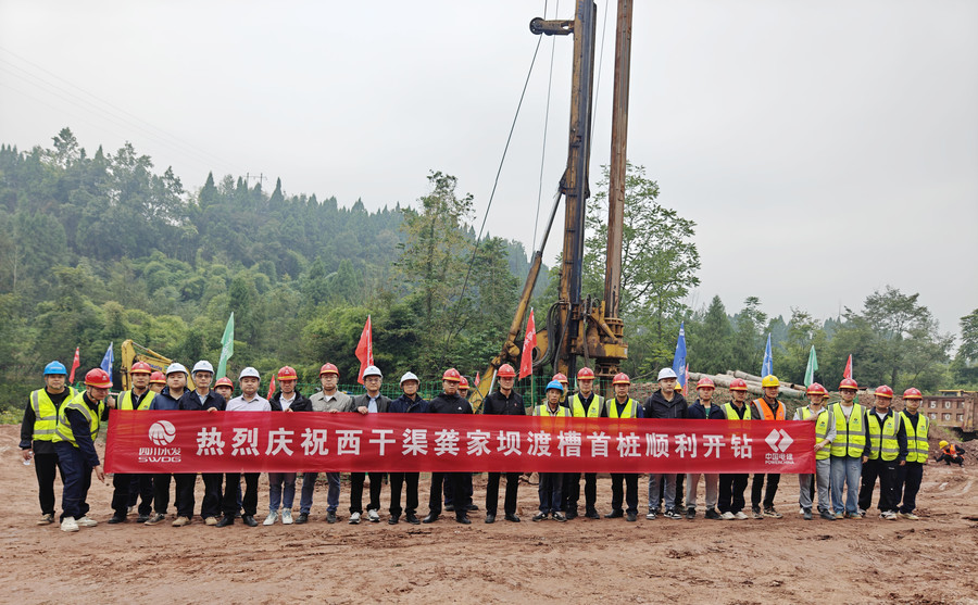 亭子口灌區一期工程龔家壩渡槽首根樁基順利開鉆