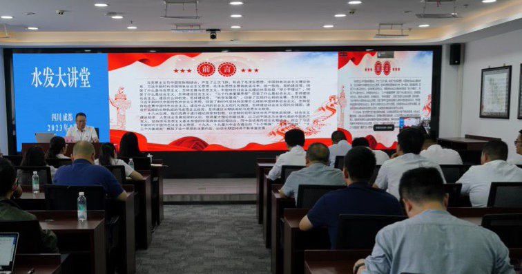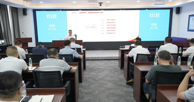 自今年6月以來,水發集團在落實水利廳“學思想見行動 做新時代水利人”主題活動中,緊扣主題教育各項要求,聯系集團實際,創新啟動了主題教育1+7“水發大講堂”。集團黨委精心謀劃,集團領導率先垂范,以集團黨委為中心,集團黨委書記、董事長鐘杰以《銘記光輝歷史 堅守初心使命 矢志擔當作為 建設四川水網》為題講授專題黨課,從銘記光輝歷史、不忘走過的路,堅守初心使命、堅定前行的路和矢志擔當作為、走好腳下的路三個方面系統地闡述了集團成立至今的發展歷程,推動跨越發展全面崛起,實現集團關鍵之年高質量發展。