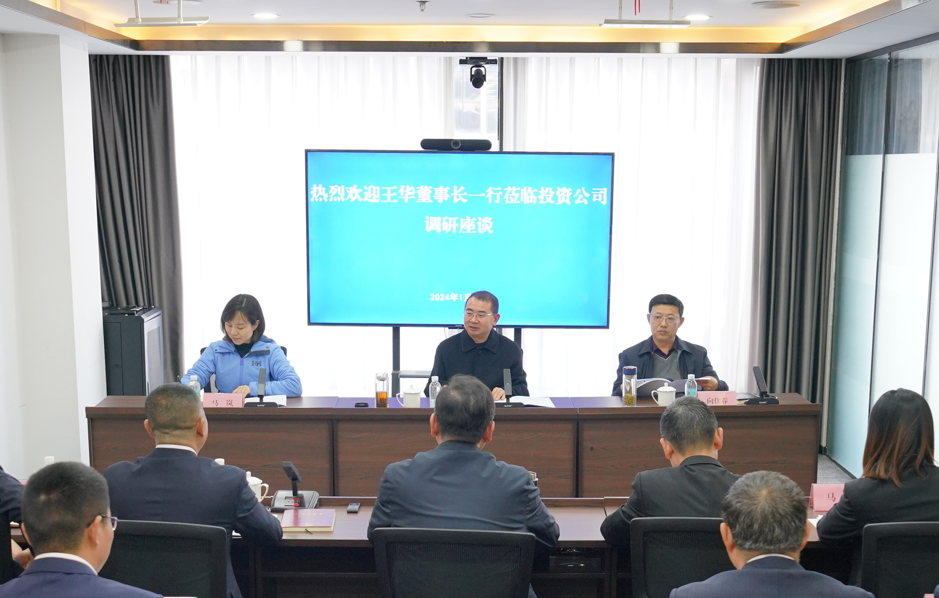 2024年1月9日,集團黨委書記、董事長王華帶隊赴投資公司調研并召開座談會,集團黨委副書記、副董事長、總經理向仕春陪同調研。