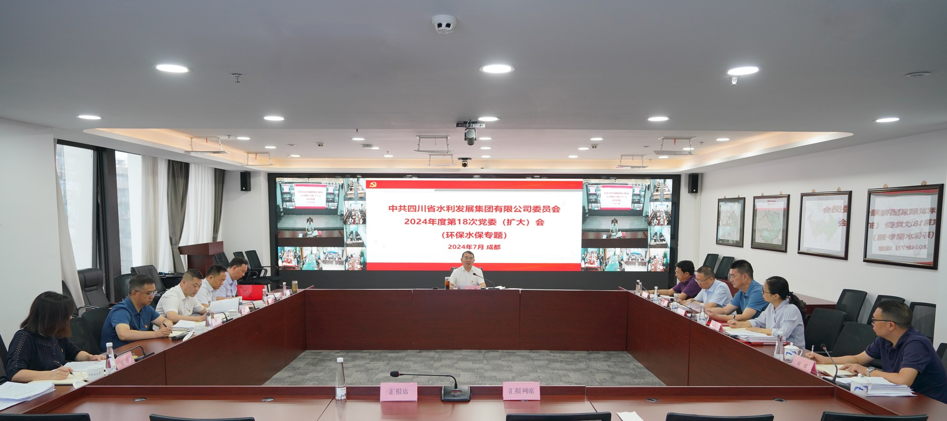 2024年7月10日,集團黨委召開生態環境保護專題工作會議,會議集中觀看了第三輪中央生態環境保護督察典型案例專題片,傳達了全省推進生態環境突出問題整改工作視頻會議精神并對近期生態環境保護重點工作進行安排部署。集團黨委書記、董事長、環水保領導小組組長王華主持會議并講話。