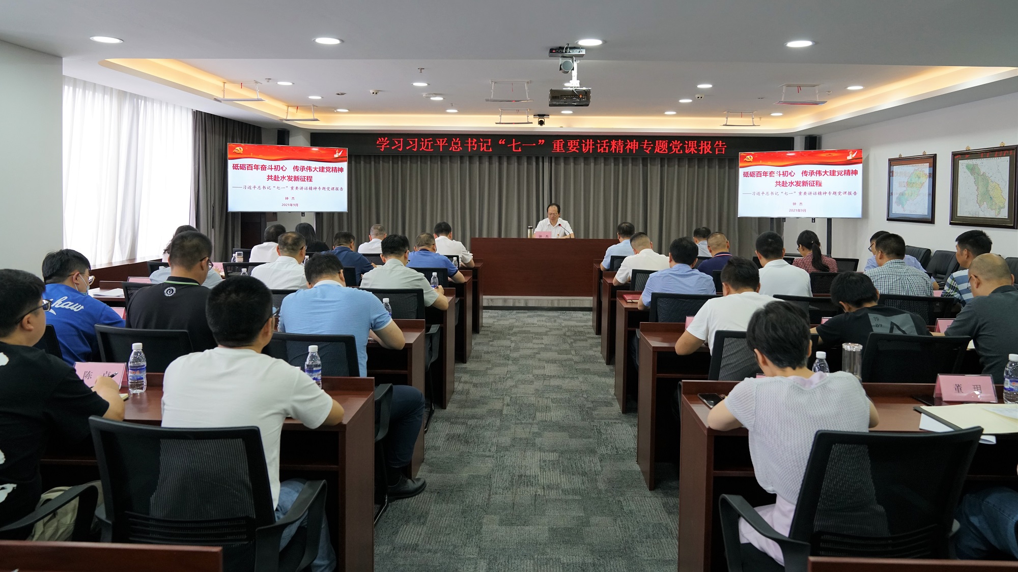 按照省水發(fā)集團(tuán)黨史學(xué)習(xí)教育統(tǒng)一安排,9月13日,集團(tuán)黨委書(shū)記、董事長(zhǎng)鐘杰以《砥礪百年奮斗初心,傳承偉大建黨精神,共赴水發(fā)新征程》為題,就深入學(xué)習(xí)貫徹習(xí)近平總書(shū)記“七一”重要講話(huà)精神為集團(tuán)總部職工講授了專(zhuān)題黨課。集團(tuán)總部全體職工參加此次會(huì)議。